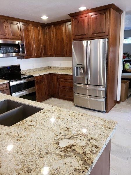 Kevin’s cabinets has an array of Cabinet designs, woods, finishes, styles from contemporary to Rustic and everything in between. We also carry a large selection of knobs for your furniture and cabinets. Concrete, granite, quartz, stainless steel, solid surface countertops. Wood, tile, concrete, slate flooring.